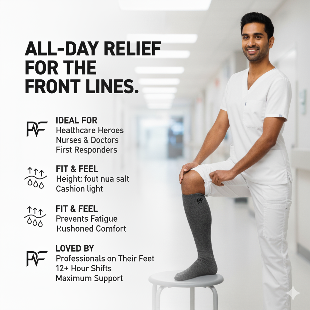 Over 10,000 nurses trust PulseFit ShiftStrong to survive 12-hour shifts. Medical-grade compression that reduces swelling, eliminates pain, and keeps you energized from clock-in to clock-out. Your legs deserve this.
